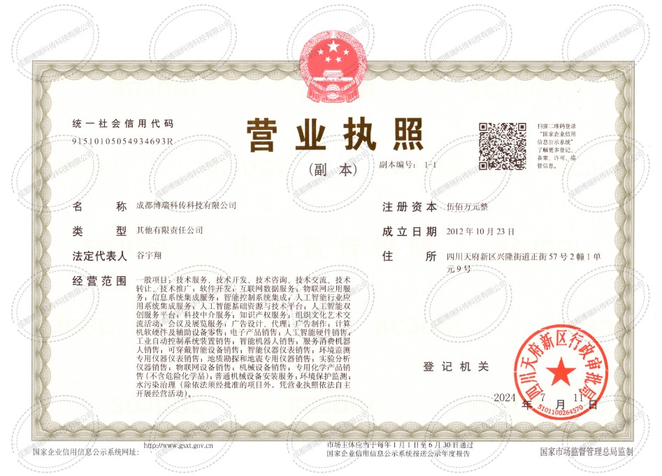 成都博瑞科傳科技有限公司始創(chuàng)于2012年,是國家高新技術企業、四川省創(chuàng)新型科技企業。公司以市場為導向、以創(chuàng)新為基因,以服務為根本,積極響應國家高質量發(fā)展政策,尊重價值、品質服務。多年來,公司秉持“以做科研的精神做產品”的嚴謹態(tài)度,圍繞市場痛點,自主研發(fā)了水質在線監(jiān)測大數據云平臺、水質監(jiān)測智能傳感站(直測)系列產品(固定站5~18參)、應急監(jiān)測產品(便攜式巡檢儀5~8參)、水氣土協同綜合管理系統、水質監(jiān)測實驗室輔助設備、地下管廊監(jiān)測、邊坡監(jiān)測等高科技、高質量設備。廣泛應用于地表水、地下水、黑臭水體直測監(jiān)測、智慧城市監(jiān)測管理、地下油氣管廊內壁腐蝕監(jiān)測和山體滑坡位移監(jiān)測。在流域監(jiān)測治理、面源污染溯源、洪峰過境監(jiān)測、網格化監(jiān)測管理、水氣土協同管理、應急監(jiān)測、水生態(tài)監(jiān)測、滑坡位移監(jiān)測、云平臺數據分析管理等應用場景發(fā)揮積極作用,為相關管理部門智能化監(jiān)管提供科學有力的支撐和保障。公司現有發(fā)明專利10余項,實用新型、軟著共計50余項。是以軟硬件結合為定位的創(chuàng)新型科技企業,是我國云傳感技術的發(fā)起者和倡導機構。